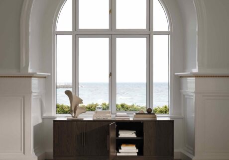 「ラウンド型のダイニングテーブルは、人と人との距離を自然に縮め、会話を生み出す。⻑方形のテーブルは、集う人数や空間のレイアウトに柔軟に対応できます。キャビネットのフロストガラスは『見せる』と『隠す』を両立し、収めたものの存在を感じさせながらも、視覚的なノイズを抑えてすっきりとした印象に」