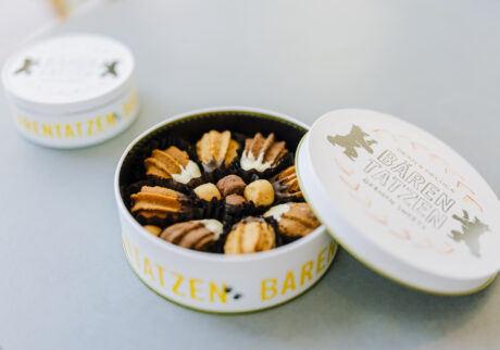 右から、ベーレンタッツェン ギフト缶・M(8個入り)¥4,104、ベーレンタッツェン ギフト缶・S(4個入り)¥1,944 〈DEAN & DELUCA〉マーケットストア、一部カフェ店舗、オンラインストアで販売中。