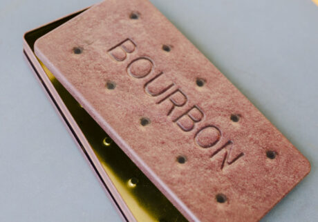 福田:あどけない表情も絶妙ですよね。ドイツの国旗に合わせた黒、赤、黄色の手描きの文字も〈DEAN & DELUCA〉のロゴとなじんでいて、素敵です。中身に関しては、食べやすいひとくちサイズを目指しました。味はメープル、ココア、コーヒー、スパイスの四種類あって、それぞれにダークチョコレートかホワイトチョコレートをディップしています。チョコレートがついている部分を先に食べるか後に食べるかでも後味が変わってきますよ。
