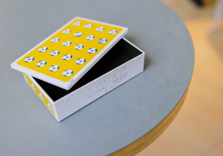 塩川:そうなんです。もうひとつは、富山のZAXFOX菓子研究所と福田さんが手がけた「チージィーポッシュ」。デザインが好きでとっておいたら、いつの間にか子どもがおもちゃ箱として使っていました。