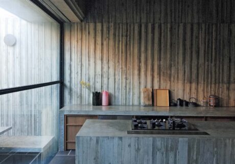 建築家・谷尻誠さんの自邸は、まさに暗さを楽しむ家である。2021年に竣工した「HOUSE T」は、洞窟にいるかのような陰影が特徴的で、玄関から奥に向かうにつれ、昼間でも照明をつけたくなる陰りのある空間が広がる。そして、北側に大きく開けた窓からは安定した光が差し込み、しっとりとしたあわいを生み出している。