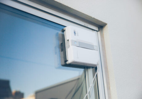まずは、コンパクトなフォルムの「WINBOT MINI」から。一辺215mm、厚さ55mmのスクエア型で、小窓や格子のある窓など、限られたスペースにも対応できる。操作はとても簡単、モップパッドを水で濡らし、水タンクに専用の洗浄液(付属品)を注入してから、本体を窓に取り付けてスタートボタンを押すだけ。10マイクロメートルの微細なミストスプレーが汚れを浮かせて分解し、吸塵性に優れたマイクロファイバー製のモップパッドが均一に拭き上げる。安全ロープなど、落下防止機能も充実しているため、使用中は他の家事に取りかかれるのも嬉しい。サイズも価格も手頃で、はじめての一台として選びやすいモデルだ。