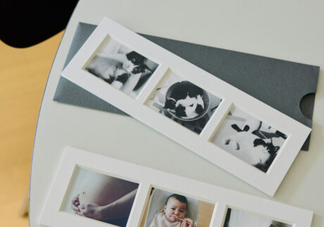 二人が箱を開けて、驚いたというのがプリントの美しさ。反射を極限まで抑えた無光沢のディープマットという〈富士フイルム〉ならではの仕上がりだ。「どの角度から見ても、反射せず、鮮明で、こんなに綺麗なんだと感動しました。家族の写真が自宅であまりに存在感を放つのは抵抗があったのですが、これならインテリアにも馴染んでくれるし、取り入れやすいです。こんなにプリントが綺麗なら、スマホで撮った写真も飾ってみたくなりました」と安島さん。