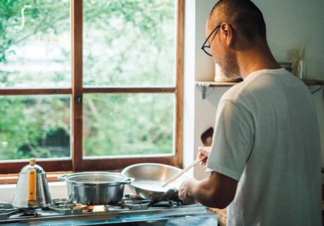 工夫とアイデアに溢れた台所を訪ねた&Premium145号(2026年1月号)「料理好きの台所」より、美術家・岡崎真悟さん、英会話講師・岡崎あかねさんの台所を紹介します。