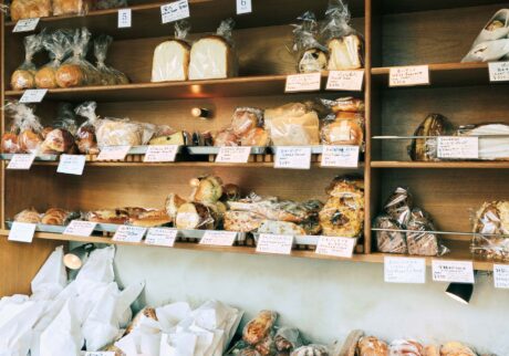 人を引き寄せる、ゆるやかな水辺のリズム。京都・鴨川、ローカルガイド。後編 | コンパクトな空間にぎっしりとパンが並ぶ『ベーカリー ウキ』(京都市上京区俵屋町455)。「おやつパンからボリュームある惣菜パンまで充実。ロールパンなどを手土産にすることも。列がないとつい寄りたくなる」と酒向さん。