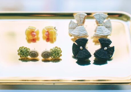 『タマス京都店』(中京区清水町352‒3‒1F)では、ヴィンテー ジのビーズやスパンコールを使って制作した繊細で独創的なアクセサリーが一堂に。デザインは数百種にものぼり、新作「Sony」シリーズなど、ネーミングもユニーク。