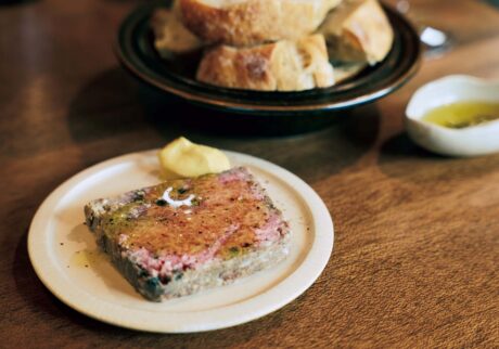 『歩く鳥』と同じビルの1 階には、焼きたてのパンとアテ、ワインを楽しめる『マチ』(左京区聖護院東寺領町8‒1)が。「私はテイクアウトが基本ですが、時折店内利用も。パンをリベイクして、田舎風パテ(ハーフ¥600)と楽しみます」