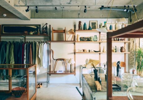 人を引き寄せる、ゆるやかな水辺のリズム。京都・鴨川、ローカルガイド。後編 | 昼間は自然光に優しく照らされ、夜は照明や並ぶアイテムの豊かな陰影が生まれる『フォーム 歩く鳥』。北欧に加えてドイツやアメリカなどのアイテムが並び、凛とした世界観を帯びている。今後は家具の扱いにも力を入れる予定。