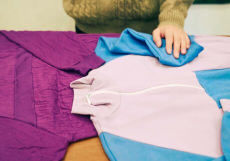 人を引き寄せる、ゆるやかな水辺のリズム。京都・鴨川、ローカルガイド。後編 | 『ラビット古着店』の早春のおすすめは、フィンランドやロシアのトラックジャケットやカットソー。現行品ではまず見つからない、ファンシーな色使いや素朴な素材感に気持ちが上がる。一点取り入れるだけで着こなしが新鮮に。