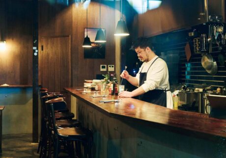 人を引き寄せる、ゆるやかな水辺のリズム。京都・鴨川、ローカルガイド。後編 | 2025年9 月にオープンした『森田倶楽部』(中京区大文字町233)は、ソムリエでもありバーテンダーでもある森田さんによるワインと国産スピリッツのバー。「深夜2 時までの営業