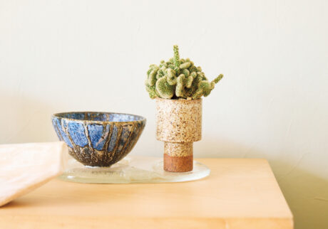 カクタスを育てている〈ア クエスチョン オブ イーグルス〉のポットや、〈ローズ・キャバット〉の一輪挿しなど、鉢や花器のセレクトにも石川さんのセンスが感じられる。