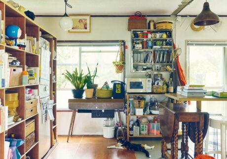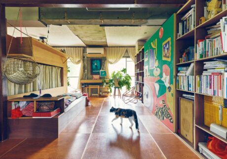 広い敷地に建てられた東京郊外にある古い団地。ある一室の扉を開けると、「物語」を愛する人のアイデンティティを感じる、創意溢れる空間が広がっていた。家主は編集者の川端麻里子さん。娘と猫3匹との暮らしだという。丸ごとリノベーションした空間には、印象的な〝ユニークな仕掛け〞が2つある。