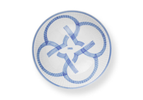 250周年という節目に登場した、新たな歴史を紡ぐコレクション「モチーフ」。「ブルーフルーテッド プレイン」の花や枝葉のパターンを再解釈し、モダンな紋様へと昇華させた。リズミカルな青いラインは職人によるハンドペイントで、よく見ると太さや間隔がひとつひとつ異なる、クラフトマンシップを感じる仕上がり。この紋様とブランドを象徴する3本の波線が共に描かれたオーバルディッシュは、食卓だけでなく、ペントレーにも程よいサイズ感。伝統と革新が共存するアニバーサリーイヤーならではのアイテムだから、自分のコレクションにはもちろん、記念として贈り物にするのもいい。
