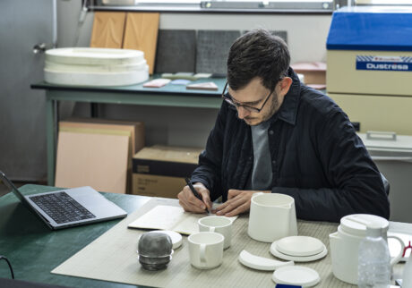 プロダクト/インテリアデザイナーのアントニー・ゲは、テーブルウェアメーカーの「深山」と協働し、テーブルウェアのコレクション《Tea Set》を制作。“繊細で壊れやすいもの”と認識されがちな磁器に密度とボリュームを持たせ、より重厚で彫刻的な一面を引き出すことを試みた。その佇まいはミニマルでありながら、不思議と日常に馴染むもの。