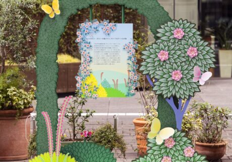 毎年春になると、生命の再生をもたらす春の訪れを祝福している〈ヴァン クリーフ&アーペル〉。今年はフランスで活躍するイラストレーターのシャルロット・ガストーとのコラボレーションにより、自然をモチーフにしたアートワークで東京・丸の内仲通りを庭園化。カラフルな花々や、優美なダンスを繰り広げる蝶々、架空の湖に集う美しい動物たちの姿など、彼女が創造する詩的な世界を堪能できる。
