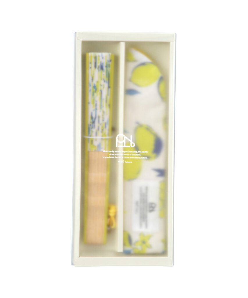 なかでも人気が高いのが、今回紹介する扇子シリーズ。ブルーを基調に描かれた花の模様は、繊細な手描き風のラインが実にモダン。扇子をパッと広げたときに華やかな柄が飛び出す様は、なんとも優雅である。お揃いの柄のプリーツスカーフははっ水加工がなされていて、バッグカバーとしても活用できる。それはレイングッズブランドの〈ダブリュピーシー〉から派生したブランドゆえの優れ技。これからの季節をいかにスマートに涼しげに過ごせるか、気分だけじゃなく実用的にも、キーアイテムとなりそう。