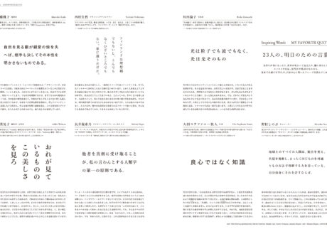 エッセイや自伝、小説、専門書などから、心に響いたフレーズ。暮らしの心得や、専門家の言葉、詩や短歌の一節なども含め、さまざまな見地をもつ人々に、心に響いた言葉を聞いてみると。