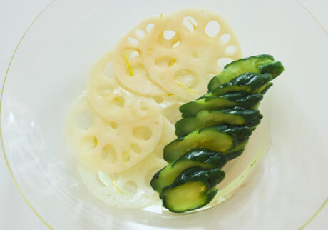 お漬物2種(胡瓜の辛子漬け & 蓮根の柚子酢漬け)
