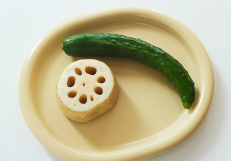 続いてお漬物2種。胡瓜の辛子漬けと、蓮根の柚子酢漬けを作ります。といっても、どちらも調味液につけておくのみ。胡瓜はよく洗って縞状に皮をむき、ジップ付き保存袋に入れて砂糖、塩、ねり辛子を加えます。あとは空気を抜いて冷蔵庫で2日ほど置いたら完成。たったこれだけ。地元・秋田で広く食べられているお漬物なんですよ。