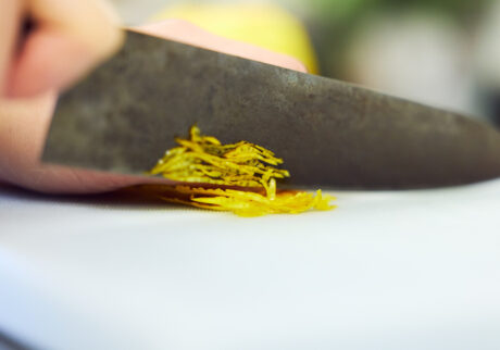 ③柚子皮は千切りにしておく。