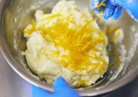 ⑤熱々のまま芋をマッシャーでつぶし、★の材料と柚子皮を入れて、よく混ぜ合わせたら完成。