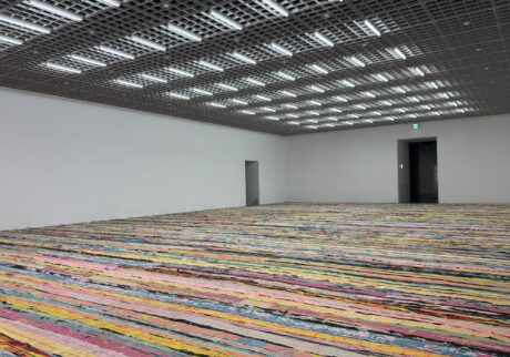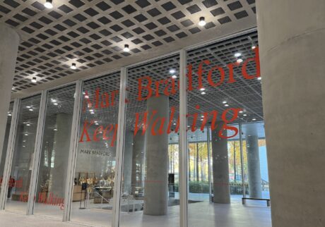 最初に向かったのは化粧品で有名な韓国発〈アモーレパシフィック〉が芸術支援を目的に2018年にオープンした美術館「Amorepacific Museum of Art」。お目当ては、アメリカを代表する現代美術家マーク・ブラッドフォードの個展「Keep Walking」です。韓国では初、アジアでも過去最大規模の展示は、巨大なインスタレーションや映像作品など盛りだくさんの内容で、しかも僕が訪れたときは偶然にも他のお客さんがほとんどいなかったので、贅沢な貸切状態。ミュージアムグッズのセンスもよく、お土産選びも楽しい時間でした。この展示は2026年1月25日まで開催中。