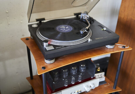 この〈タンノイ〉のスピーカーには、〈トライオード〉の真空管アンプを繋げています。レコードプレイヤーは〈テクニクス〉の「SL-1200MK4」を。