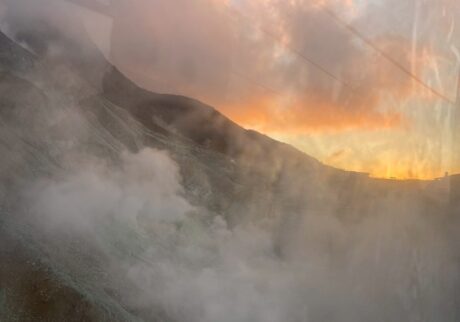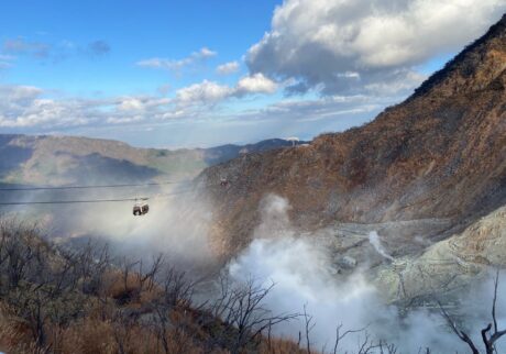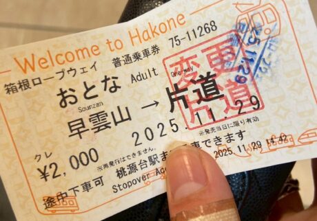 ⼤涌⾕からの帰り道、バスが運休していて、⾏きにも乗ったロープウェイにまた乗ることになった。⼤混雑の乗り場を横⽬にどんよりとチケットを買いに⾏くと、駅員さんが声を掛けてくれた。