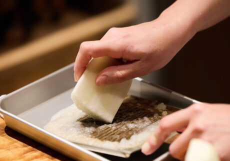 今回紹介するのは、 二種類の大根おろしと、酒粕を使ったひと鍋。 きめ細かいふわっふわな雪おろしと、 ごろごろ食感が楽しい鬼おろし。 口当たりの違う大根おろしを二種類用意するのが、この鍋の面白さ。 大根の甘みが、だしにたっぷりと加わり、寒い時季に体を芯から温める。