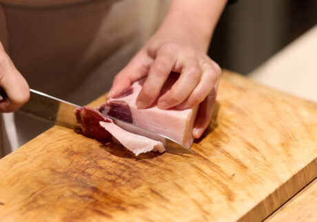 猪のいちばんの魅力は、やはり脂だ。実は豚肉よりもくどさや臭みがない。舌の上ですっとほどける甘みと旨みが軽やかで最高なのだ。