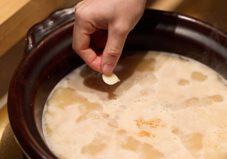 *にんにくと一味を入れることで、出汁に厚みが加わり、味わいにボリュームが出る。