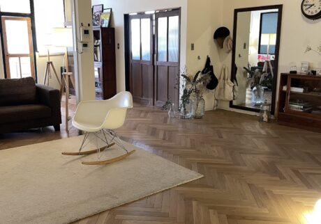 広いリビングのヘリンボーン模様の中に、少し歪なパーツがひとつだけある。