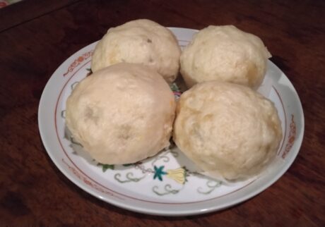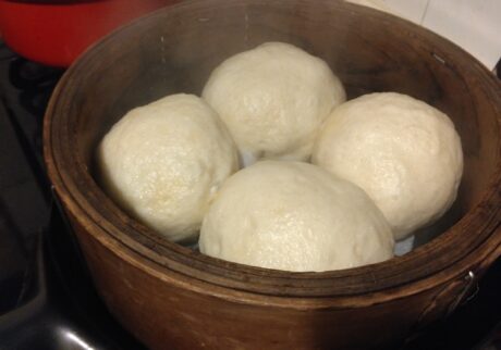 ちょっと洗い物などしながら30分くらい生地を寝かせ、具をたっぷり包んで15分程度蒸したら、できあがりです。具を包んだ後に、二次発酵などはしなくても大丈夫です。一番初めに作ったドロドロの生地にしっかり気泡ができていれば、必ず膨らみます。