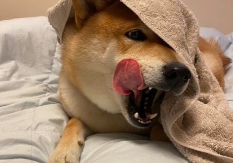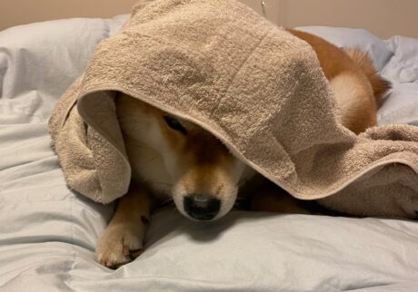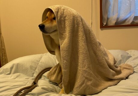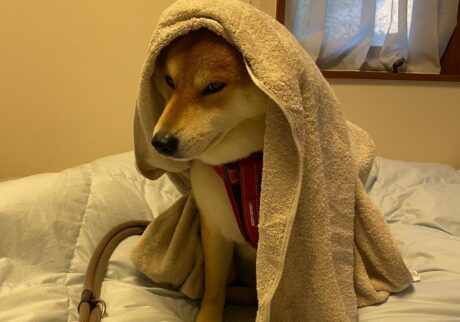 こんにちは、ハルくんです。いつまでも暑い今年の晩夏〜秋。暑さはぼくたちワンコには本当に苦行で、お散歩好きのぼくとしても行きたくないなぁの朝があるのです。この日はまさにそんな気分で、「みんな起床〜」という、いつものとーちゃんの掛け声で起きたはいいけれど、そのままとーちゃんのベッドに逃げ込んだぼく。枕カバー代わりのタオルに包まって隠れてみましたが、簡単にハーネスを付けられてしまいました。さぁ、お散歩に行こう。