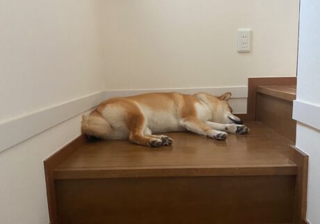 こんにちは、ハルくんです。おうちの中のぼくの陣地はいろいろあるのですが、最近のお気に入りは階段の踊り場。ダイニングのベランダ前とか2階のベッドとかももちろんいいのですが、ここだと、出かける支度をしているなとか、お洗濯物の取り込みだけだなとか、かーちゃんとーちゃんの動向がつぶさにわかるのが最大のメリットなのです。それに風通しもいいから、エアコンをつけずに窓を開ける日が増えたこの季節は、とてもいい休憩場なのです。唯一のデメリットは踏まれる危険と隣り合わせってことくらいですかね。