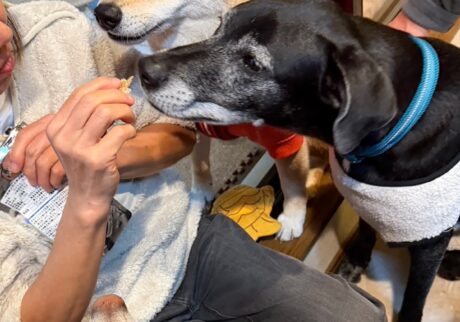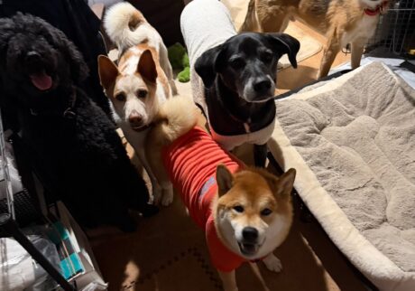 こんにちは、ハルくんです。2026年になってすでに1か月が過ぎてしまいました。この分だと今年も早そうだわね〜とかーちゃんがボヤいていましたが、そんなことはないと思います。だってまだ新年会のシーズンが続いていますからね。今回はご近所のチャゲとカイトのおうちに、仲良しのグーフィーとユイットと一緒にお邪魔してきました。人間7人+犬5匹の賑やかな新年会です。かーちゃんとーちゃんたちはお酒やご馳走をたっくさんいただき、ぼくたちもいろんなおやつを振る舞われ、大満足。ずーっと新年が続けばいいのにね。