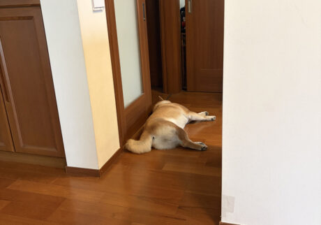 こんにちは、ハルくんです。おうちの中のぼくの陣地は、かーちゃんのベッド脇のラウンジクッションがメインで、あとはいろいろ。ダイニングの窓際の床、階段の踊り場、時々とーちゃんのベッド、というところでしょうか。とはいえ、おうちにいるときのぼくたちワンコは大抵寝ているわけで、陣地であるかどうかはまったく関係なく、あちらこちらに散らばってスリープ。まさに「落ちている」状態なのです。みなさん、そういうお宅に伺った際は落ちているワンコを踏んづけないように気をつけてくださいね。