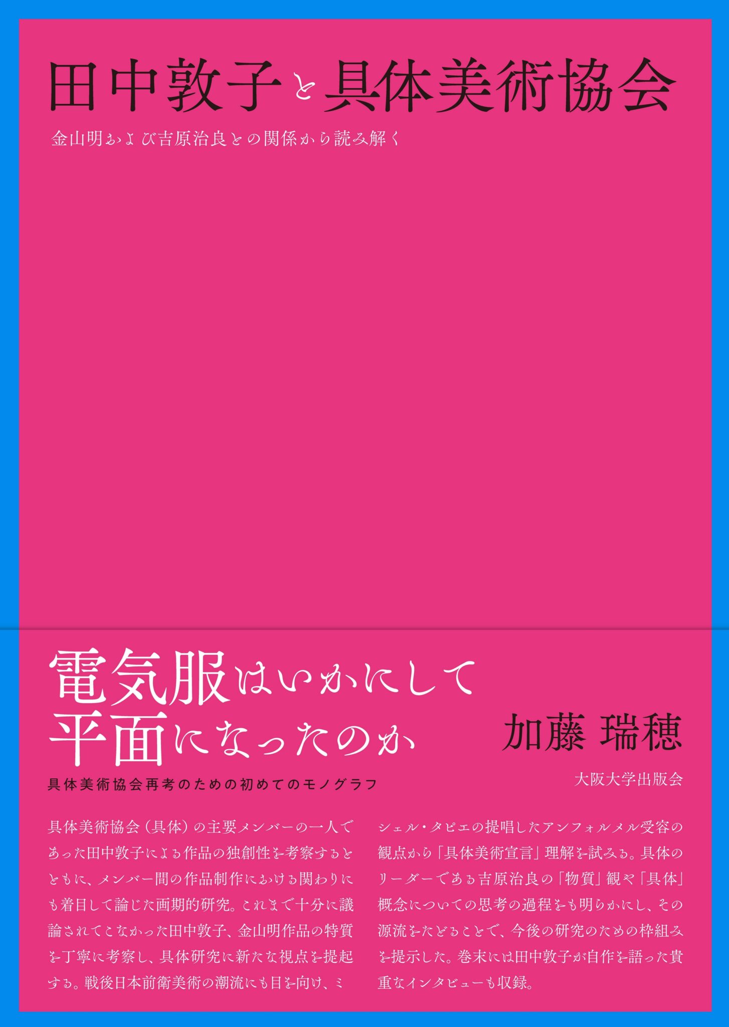 『田中敦子と具体美術協会―金山明および吉原治良との関係から読み解く』(大阪大学出版会)田中敦子に関する初の研究書。彼女の作品の独創性を考察し、その特質がいかに形成されたかを明らかにする。巻末には田中本人が自作を語った貴重なインタビューも収録。
