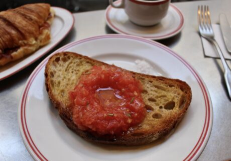 こちらは2〜3個作り置きをして、なくなったら、また用意する、というのを1日中繰り返すそうで、注文時にリクエストすると焼いてくれる。これもまた、コーヒーとよくあった。私は、クロワッサンサンドのほうが朝ごはんに好きかもしれない。パン・コン・トマテは、クイックランチに食べたい気がする。