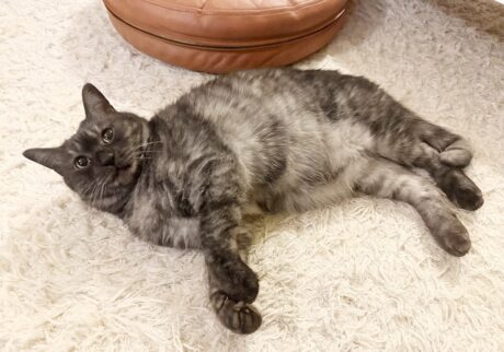 ファッションブランド〈LOISIR〉デザイナー・前田敬子さんと暮らすえいた。ハンサムな名前の由来は永代橋(えいたいばし)の近くでコールタールまみれになって遊んでいるところを保護されたことから。空気は読めないと、ボランティアの方からもお墨付き。すでに壮年猫なのに相変わらずやんちゃで食いしん坊。趣味で段ボールアートを作ったり、上腕二頭筋を鍛えてみたり……。以前本誌で連載していた『まこという名の不思議顔のねこ』に登場していたまこは姉猫。兄猫しろたろとまことの暮らしを経て、現在は妹猫にんにんと同居中。本誌2022年5月号にて、わたなべとしふみさんによるえいたの紹介イラストを掲載しています。