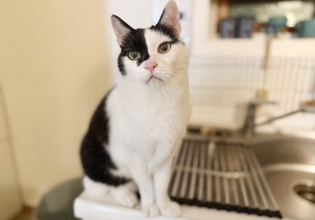 性格って、留守番中もちゃんと三者三様。今日もえいたは、キッチンでお代わりを待っている。