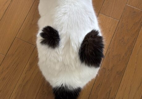俺の毛並みといえば、この豆大福みたいなまぁるい背中のブチがチャームポイントやねんけど、ときどき飼い主にいたずらされるねん。