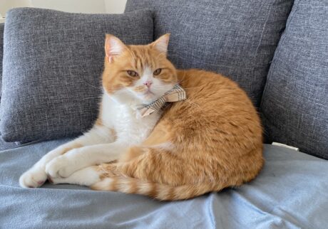 僕の名前はとろろ。2025年3月で5歳になった、ふわふわほっぺのハチワレの男の子。僕の真っ白でふわさらな胸毛を見た飼い主さんが「摺ったとろろ芋みたいだね」と、とろろという名前を付けてくれたよ。この自慢の胸毛のおかげで、香箱座りがきれいだって褒められるんだ! 性格は甘えん坊で、毎晩ゴロゴロ喉を鳴らしてふみふみするのが日課だよ。本誌2023年4月号にて、わたなべとしふみさんによるとろろの紹介イラストを掲載しています。