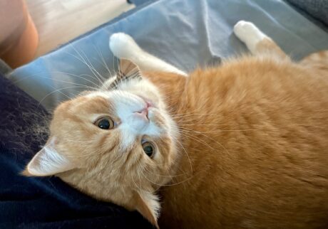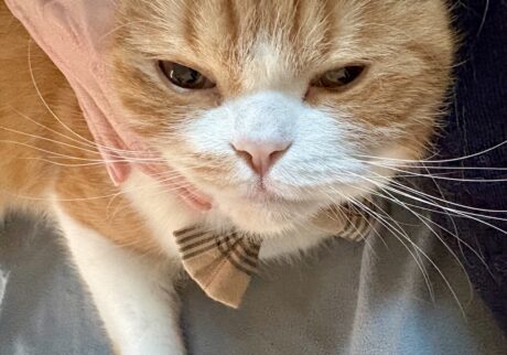 僕の名前はとろろ。2025年3月で5歳になった、ふわふわほっぺのハチワレの男の子。僕の真っ白でふわさらな胸毛を見た飼い主さんが「摺ったとろろ芋みたいだね」と、とろろという名前を付けてくれたよ。この自慢の胸毛のおかげで、香箱座りがきれいだって褒められるんだ! 性格は甘えん坊で、毎晩ゴロゴロ喉を鳴らしてふみふみするのが日課だよ。本誌2023年4月号にて、わたなべとしふみさんによるとろろの紹介イラストを掲載しています。
