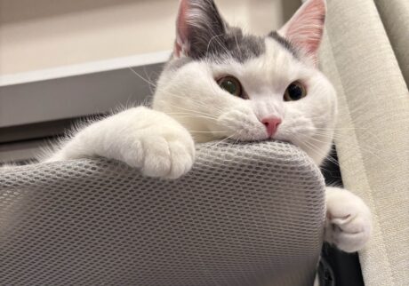 こんにちは。ボクはうずら。ブリティッシュショートヘアの1歳の男の子。5kg越えの、鍛えられたたくましいボディのもちぬしだよ。食いしん坊で、走り回ったり、イタズラが大好き。あとは、おっとり系兄ねこのハクマルのことも大好き。腰にある柄がおそろいなんだよ。でも性格は真逆なんだ。本誌2025年12月号にて、わたなべとしふみさんによるうずらの紹介イラストを掲載しています。