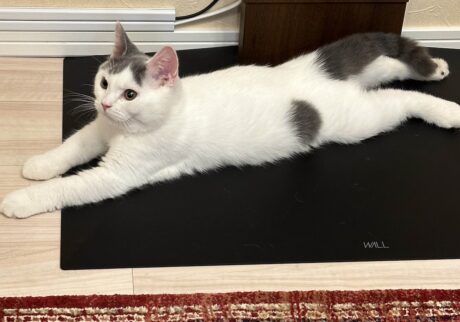 こんにちは。ボクはうずら。ブリティッシュショートヘアの1歳の男の子。5kg越えの、鍛えられたたくましいボディのもちぬしだよ。食いしん坊で、走り回ったり、イタズラが大好き。あとは、おっとり系兄ねこのハクマルのことも大好き。腰にある柄がおそろいなんだよ。でも性格は真逆なんだ。本誌2025年12月号にて、わたなべとしふみさんによるうずらの紹介イラストを掲載しています。
